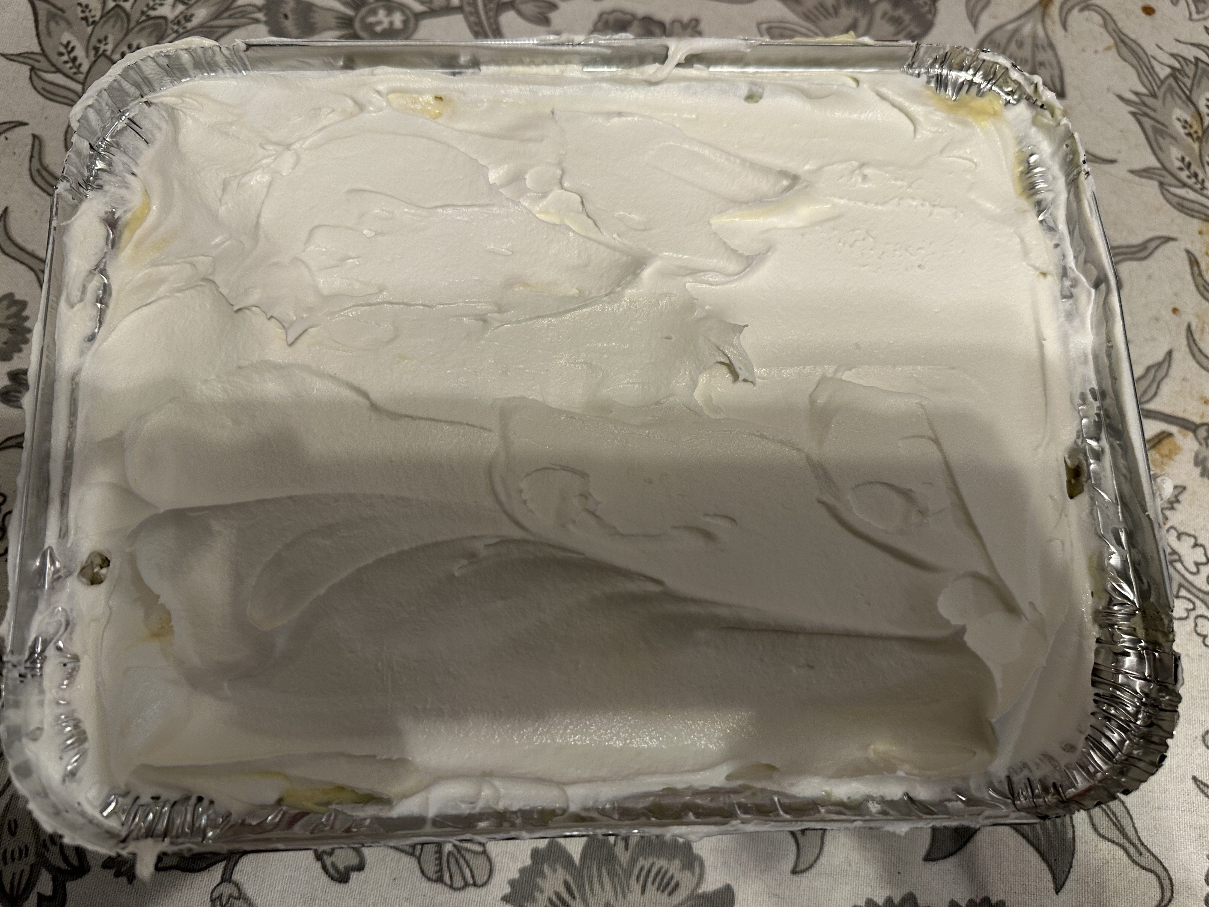 With the cookie-banana ballet complete, it’s time for the pudding to take the stage. Spread half of the velvety pudding mixture over the bananas, ensuring an even distribution. Now, commence layering once more: another round of cookies, bananas, and the remainder of the pudding mixture. And here comes the grande finale—the crowning glory—cover the second layer with the entirety of the Cool Whip. It’s like dressing our dessert in a cloud of sweet perfection.