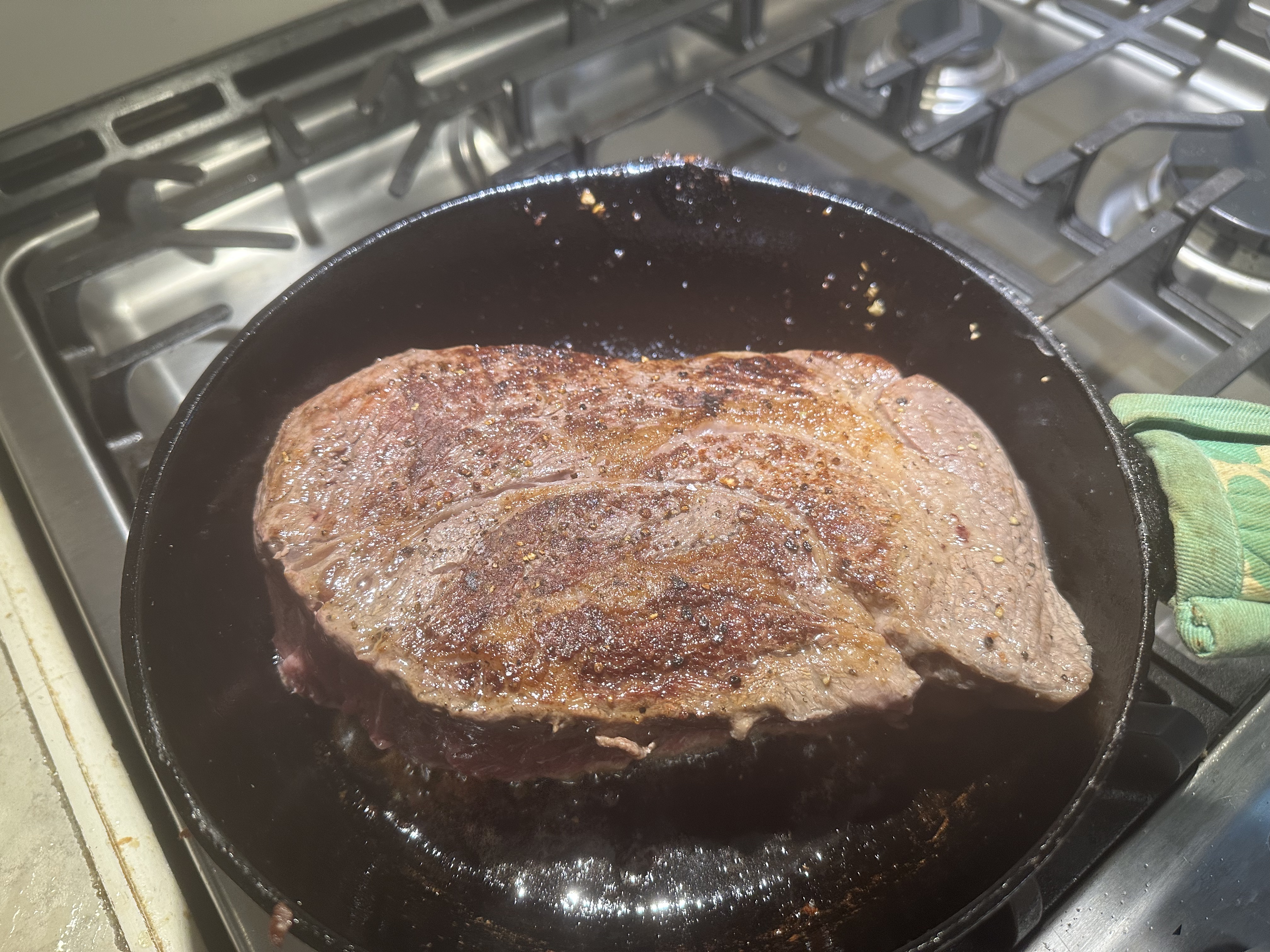 3. Salt and pepper the beef on all sides. Add beef to the skillet and sear on each side for 3-5 minutes. Transfer beef to slow cooker.