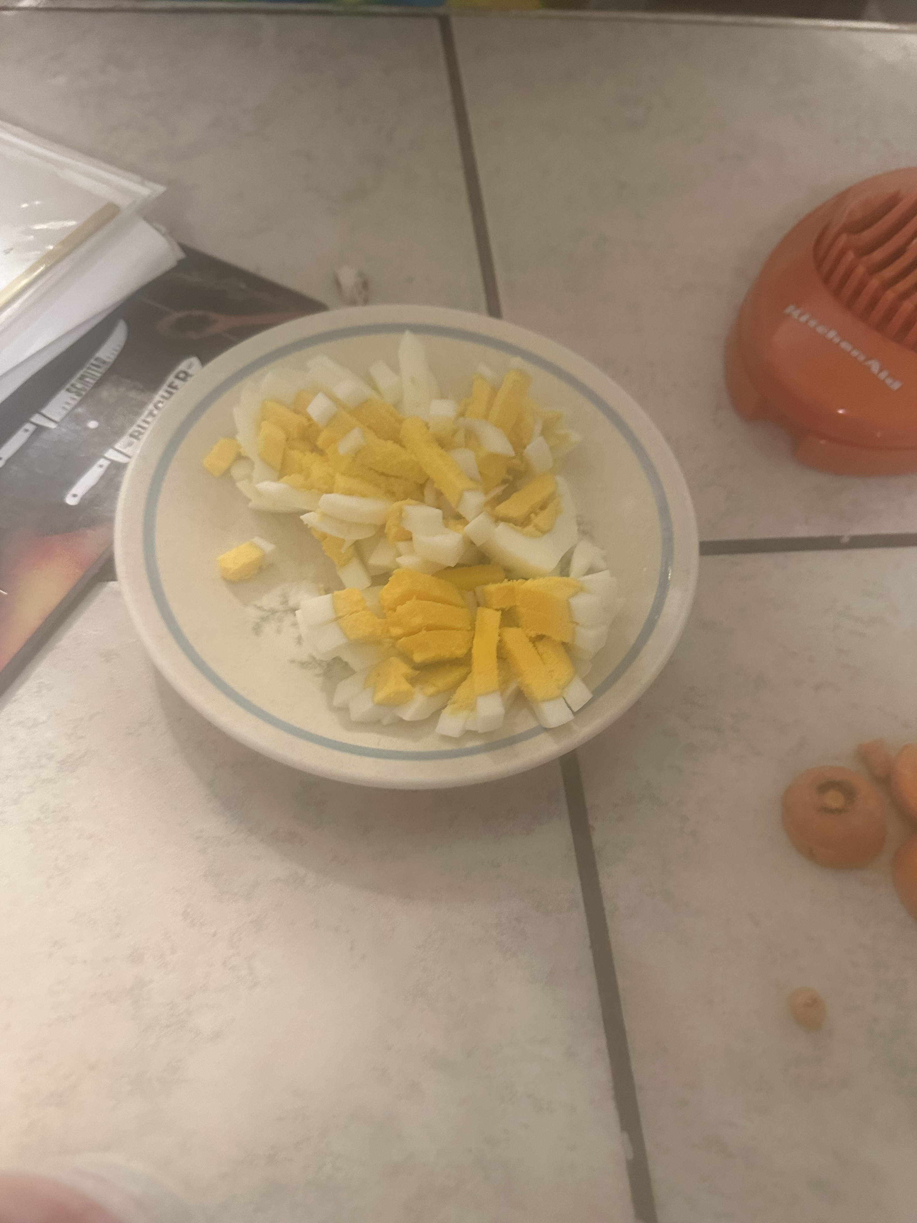 - Boil eggs and dice
