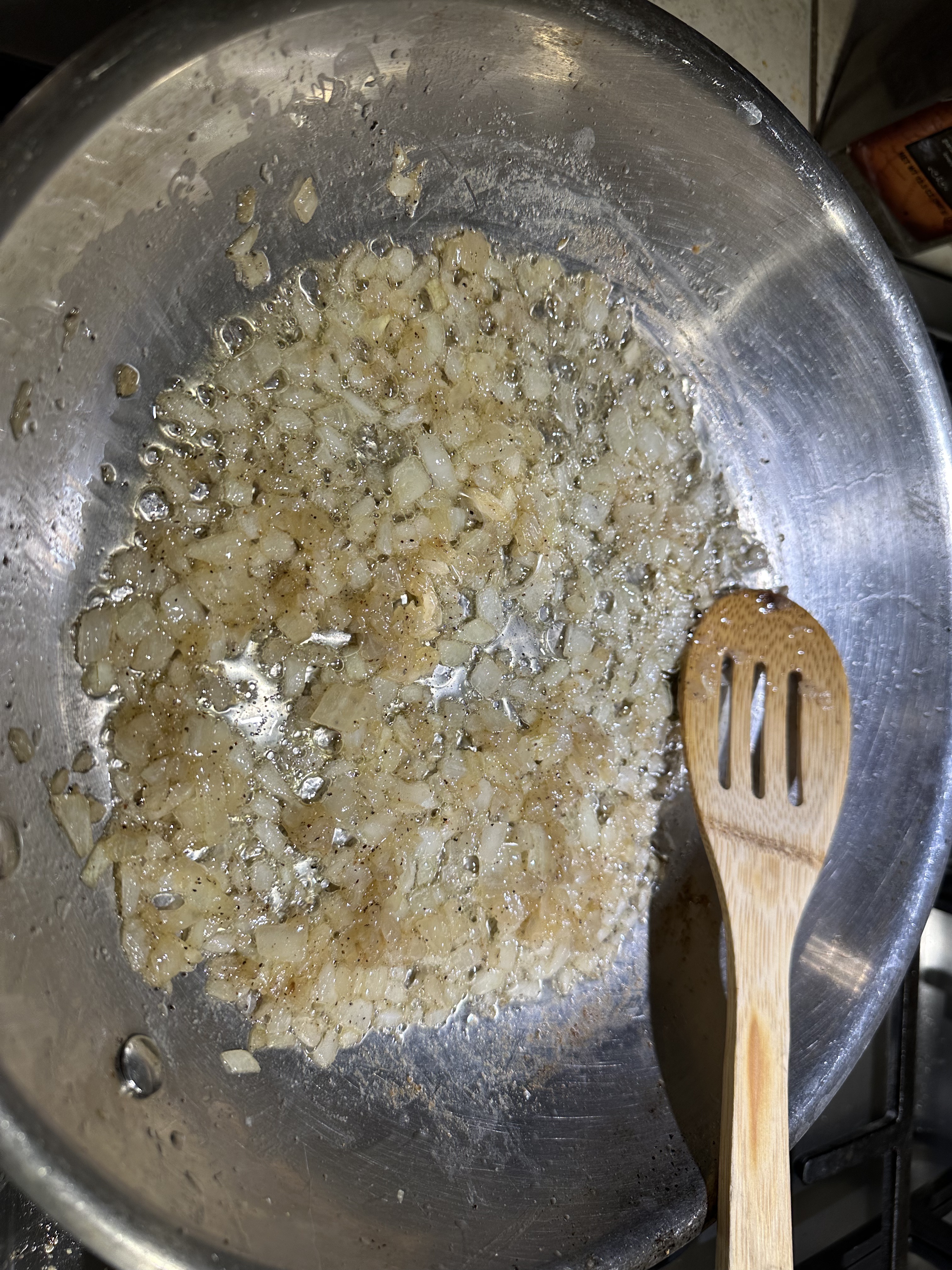 - Melt the butter in a medium skillet over medium heat. Sauté the onion until it is translucent. Season with salt and pepper throughout the cooking process.
