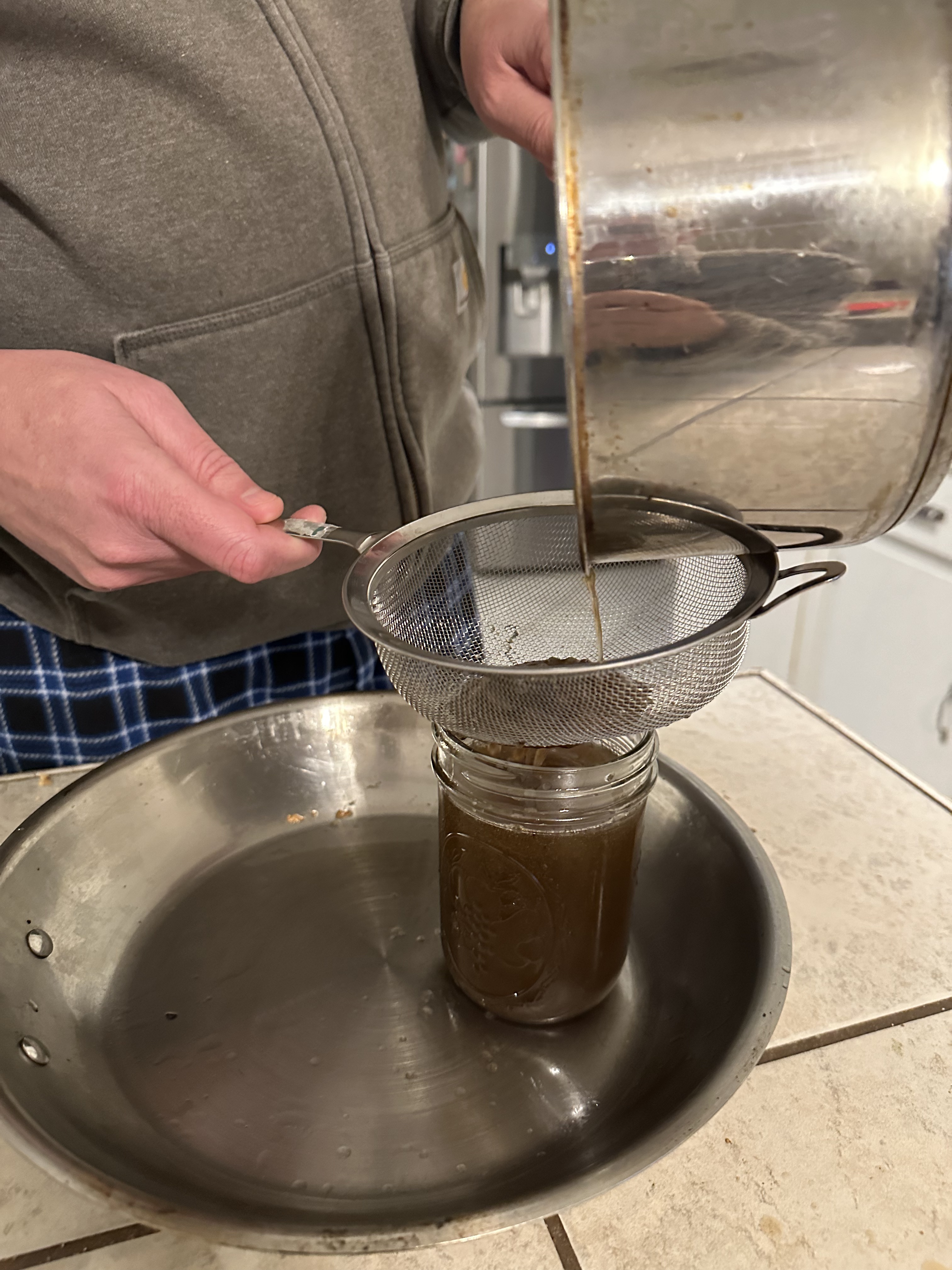 - Heat fat until it liquifies and strain it to remove debris. Put into a mason jar