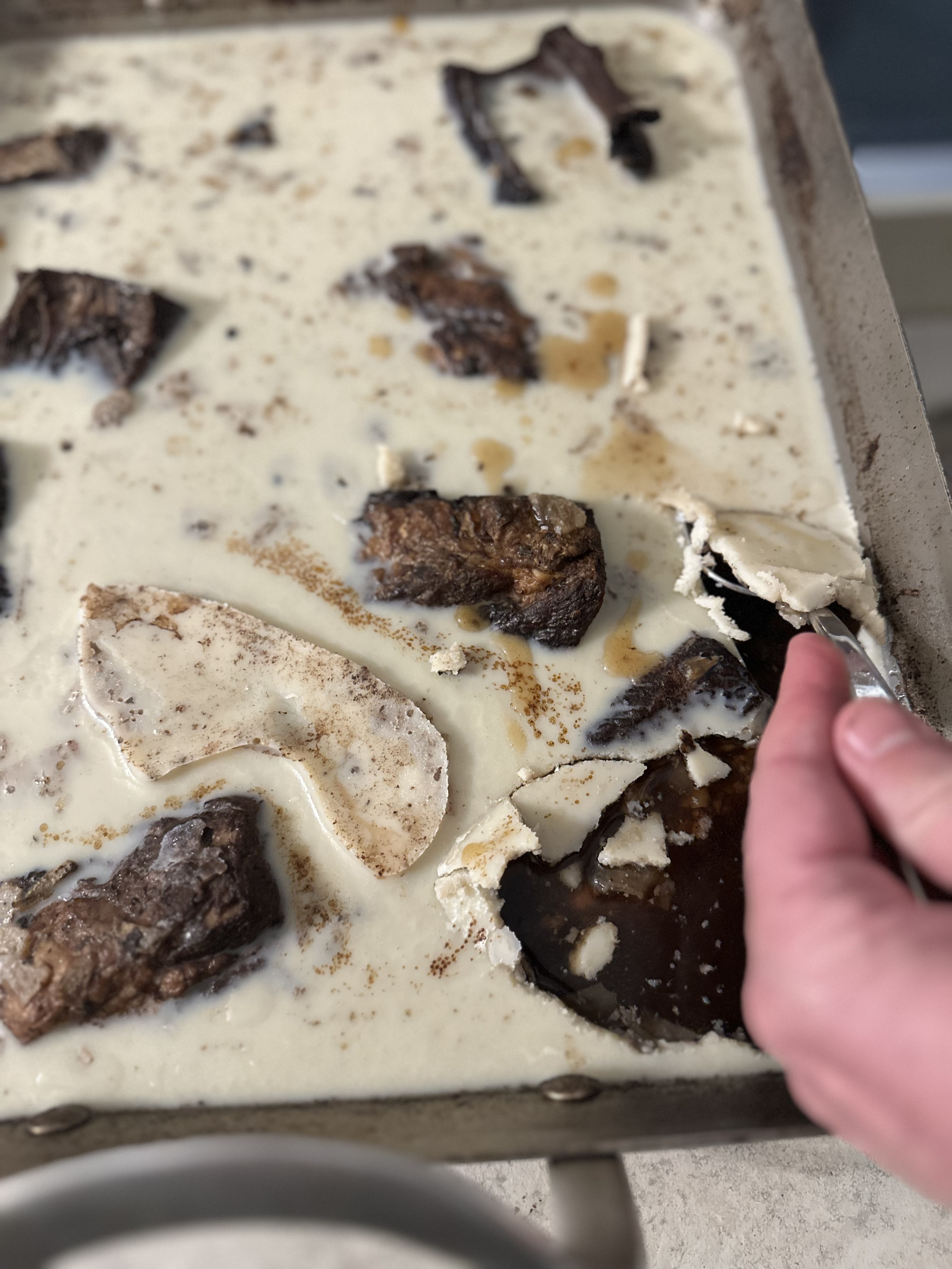 - Scrape fat from prepared meat into a medium saucepan. (In my case I used the fat rendered from my short ribs previously posted)