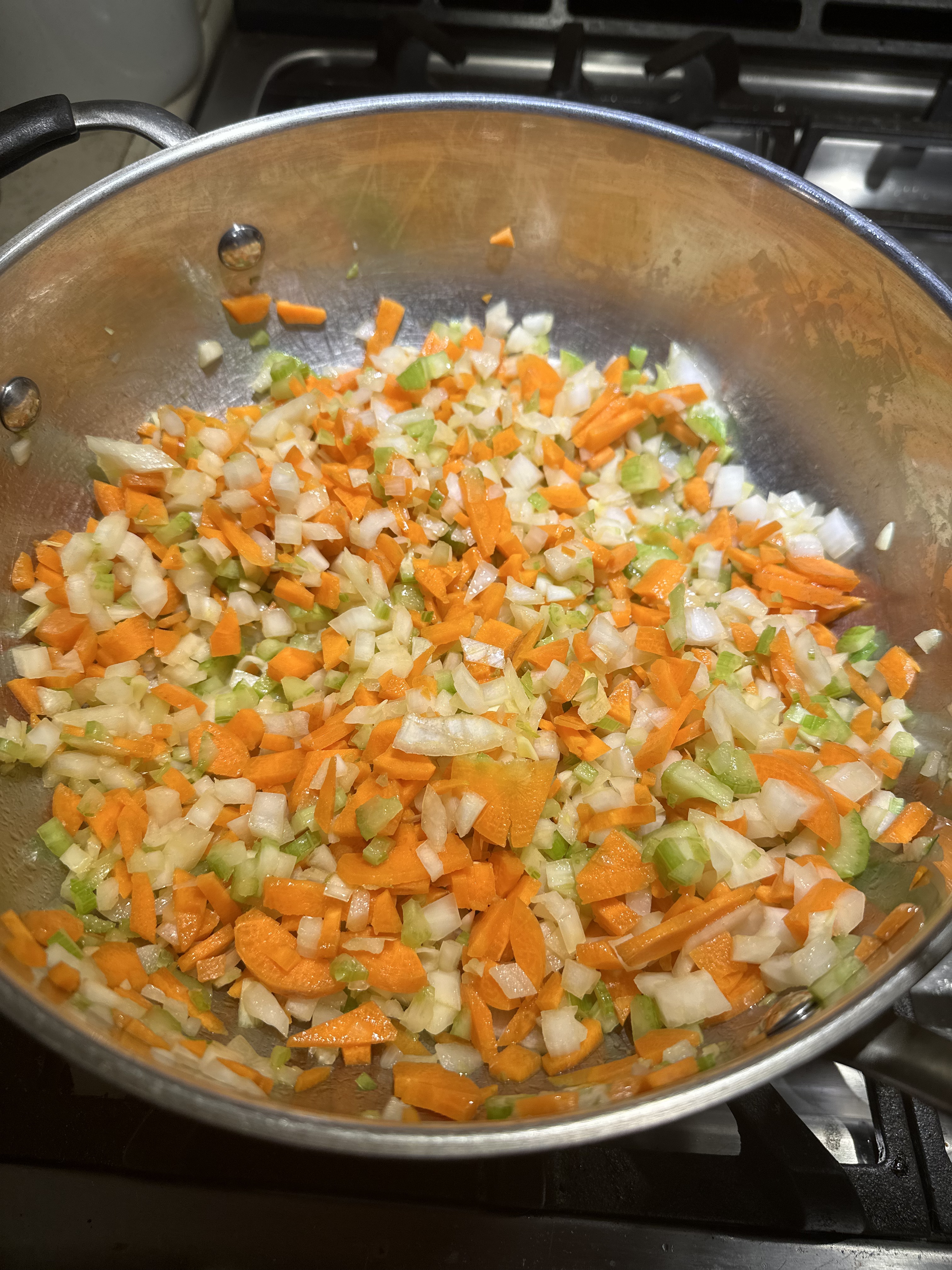 - Melt the butter in a large saucepan over medium heat. Add the carrots, celery and onions, and cook until the vegetables begin to soften. Add the garlic and cook another minute or two. Seasoning with salt and pepper throughout the cooking process.